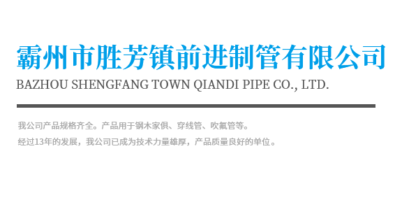 Bazhou Shengfang Town Qiandi Pipe Co., Ltd. 霸州市勝芳鎮(zhèn)前進(jìn)制管有限公司位于河北霸州市勝芳鎮(zhèn)開發(fā)區(qū),地處京、津、保三大城市中心地帶。北距北京120公里,東距天津45公里,西有京九鐵路,北有津保高速公路貫通。規(guī)格齊全,檢測完備